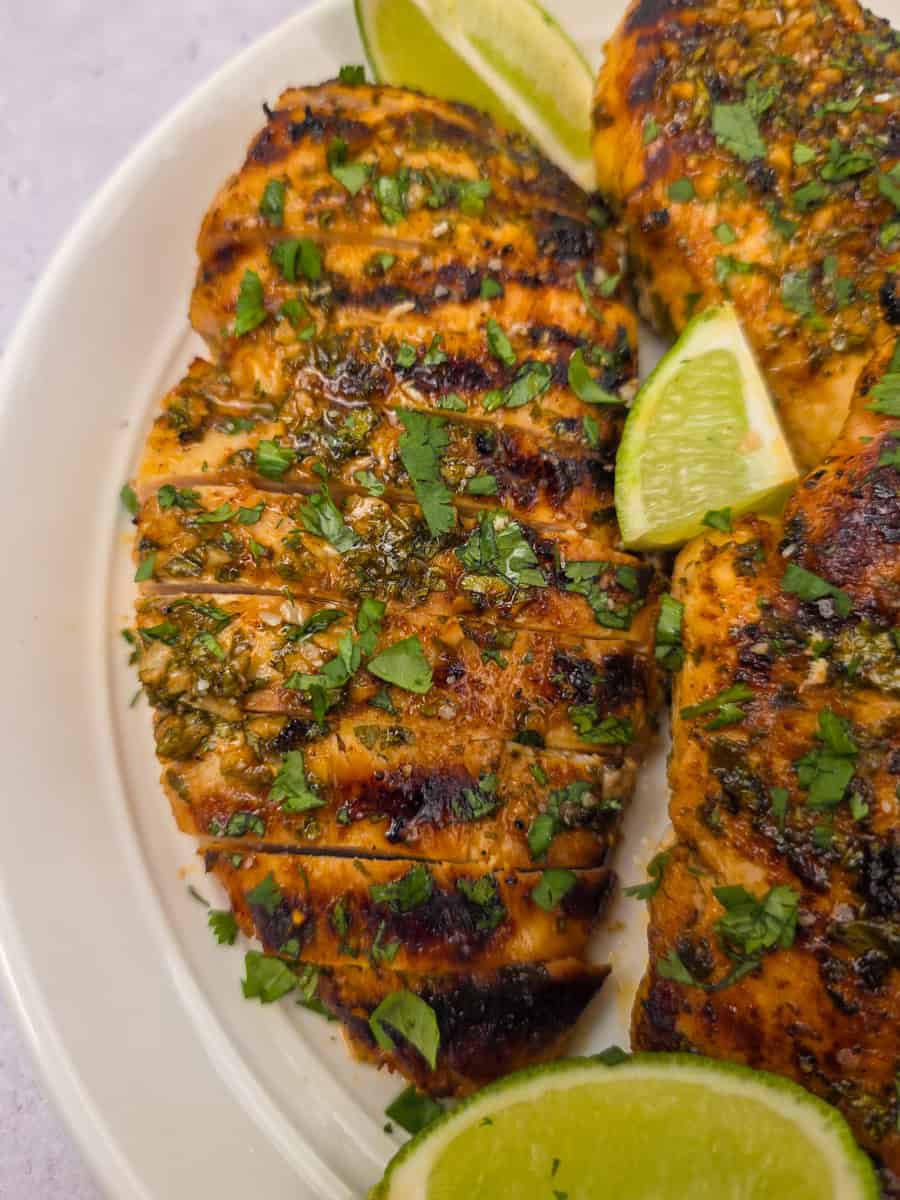 There is so much flavor packed into this easy to make cilantro and lime chicken marinade. With fresh lime juice, cilantro and garlic, it packs a punch that is perfect for all cuts of chicken. For this recipe I'm sharing how I use it to marinate boneless skinless chicken breasts. They come out so incredibly flavorful and juicy I love a good from-scratch recipe that makes a simple weeknight dinner a win!