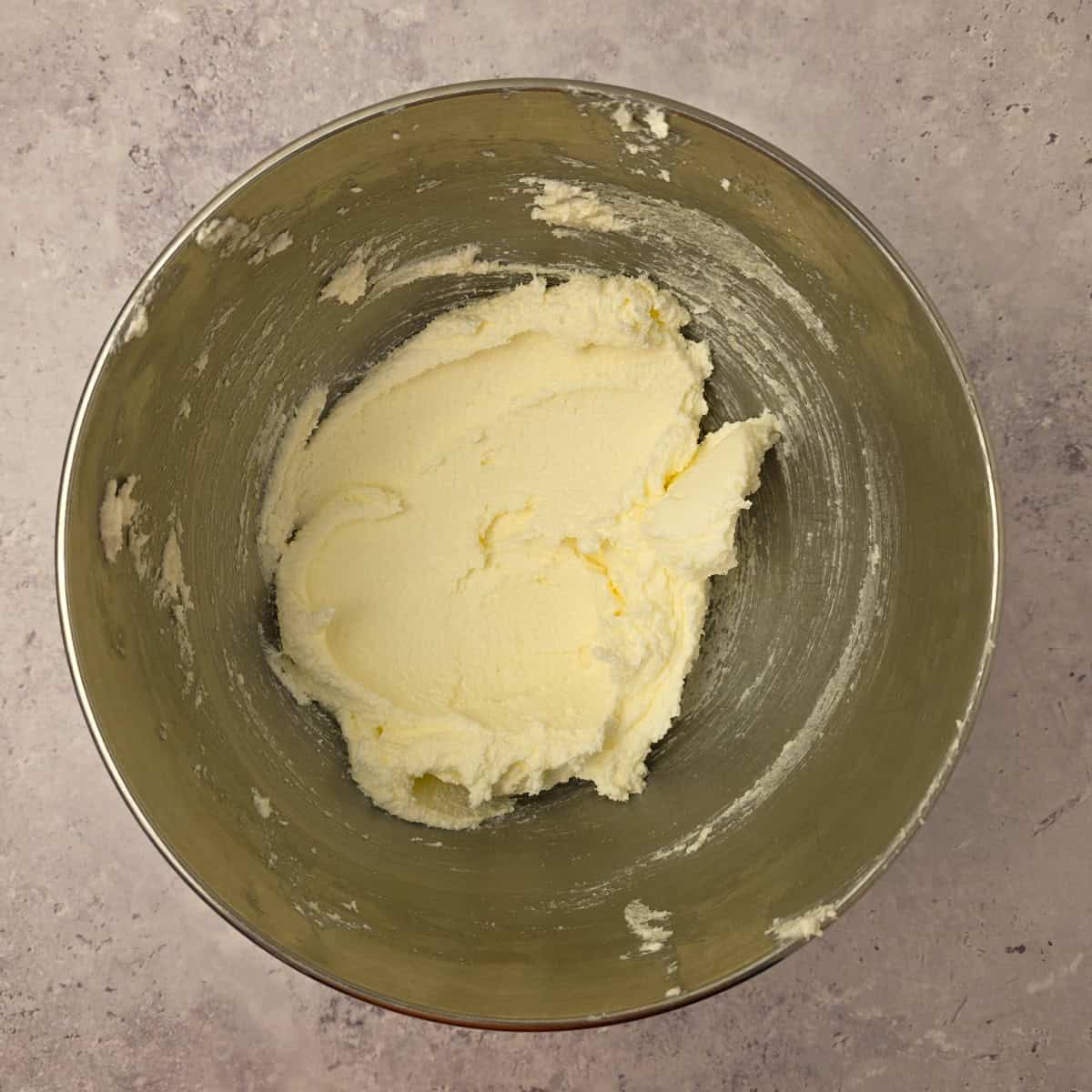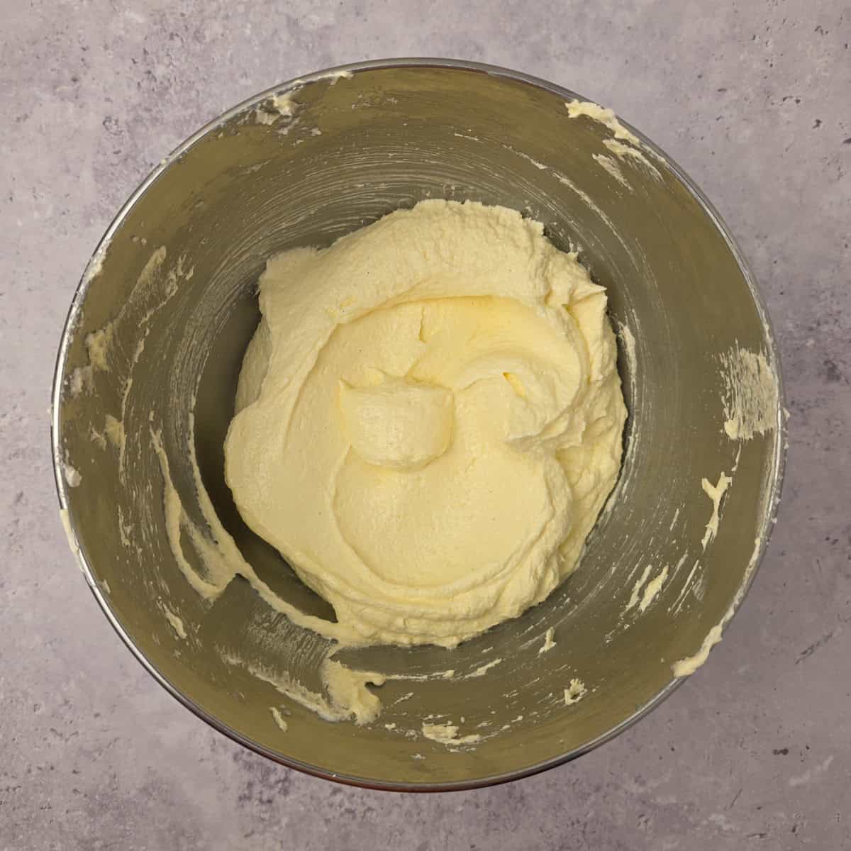 - Cream together the butter and sugar until the mixture becomes light and fluffy, which typically takes about five minutes.
