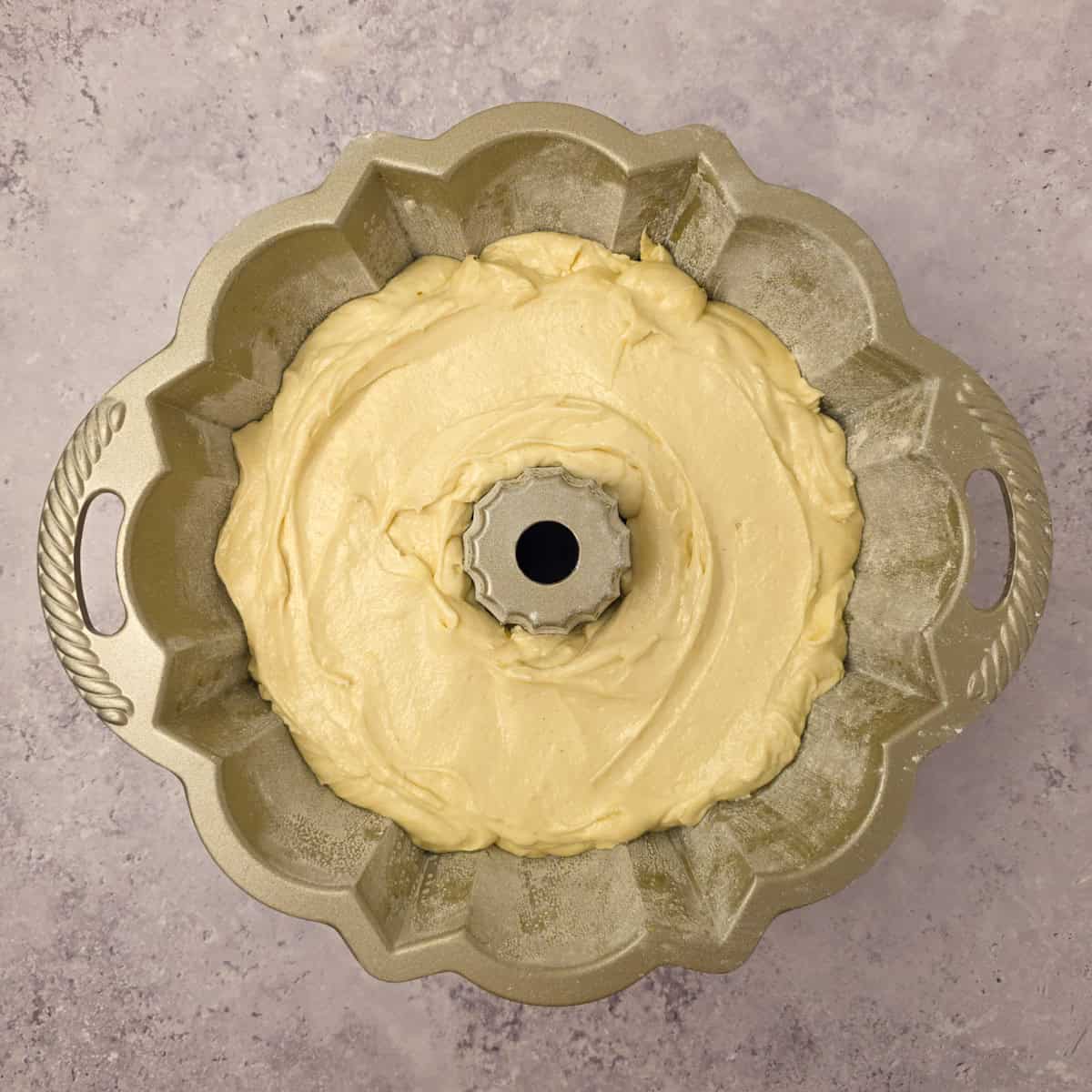 - Thoroughly grease and flour the bundt pan to prevent sticking.