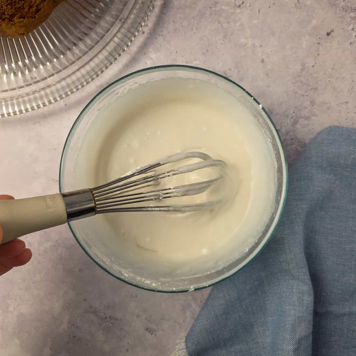 - Allow the cake to cool for 5 minutes then invert it onto a cooling rack. While the cake is cooling whisk together the coconut cream, powdered sugar, and coconut extract. Once the cake has completely cooled, pour over the icing and sprinkle with shredded coconut. Enjoy!
