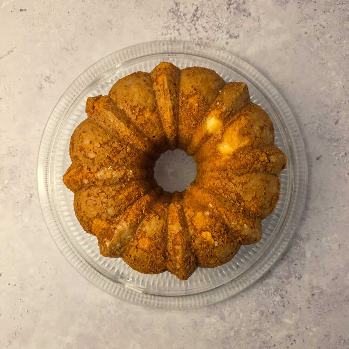 - Spoon into the prepared bundt pan and bake for 50-55 minutes, or until a toothpick inserted comes out clean.