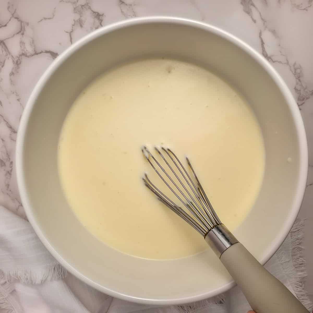 - In a medium bowl whisk together both milks and egg yolks until smooth.