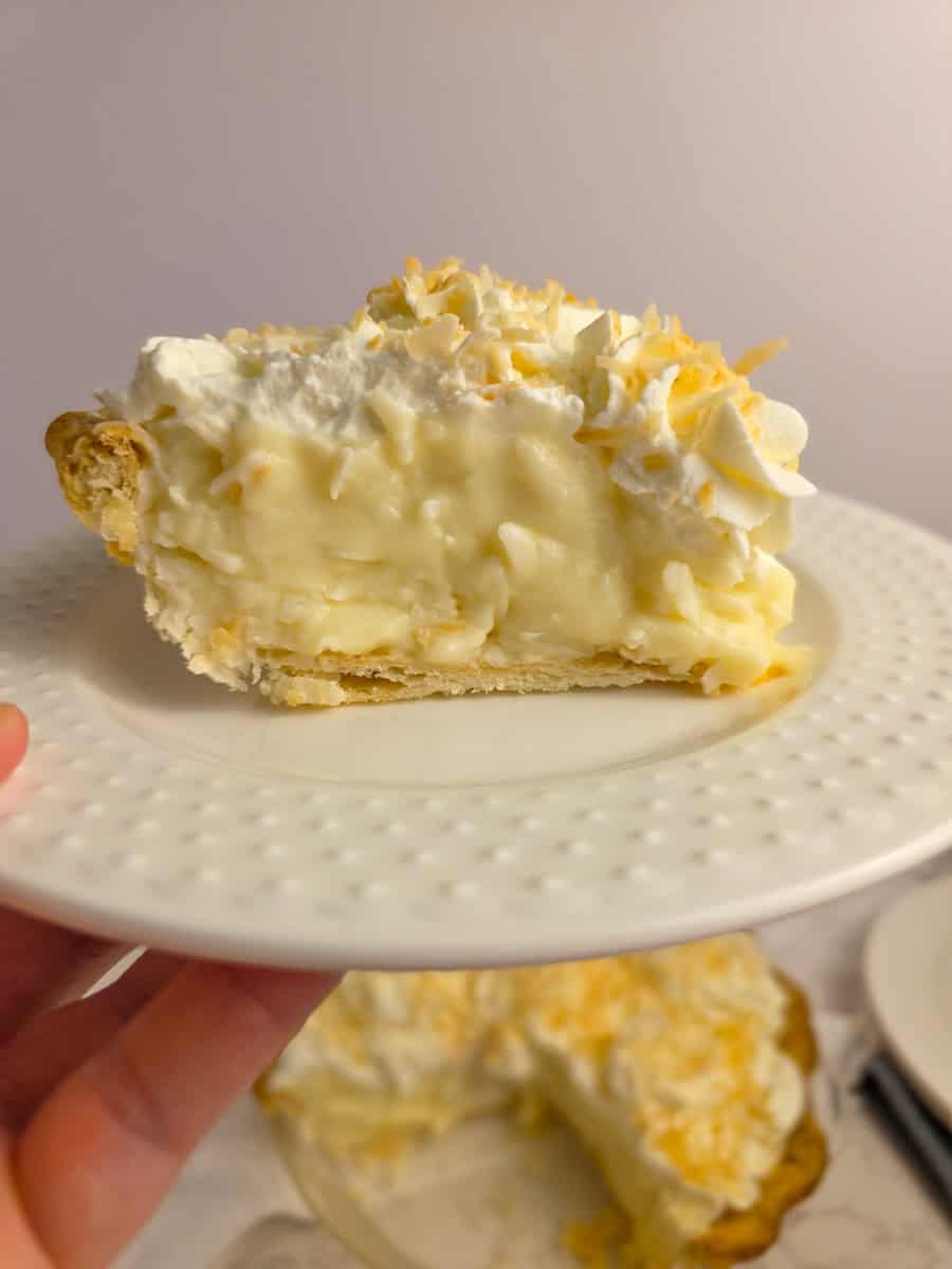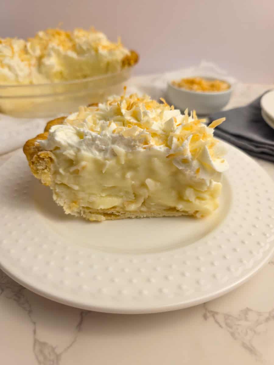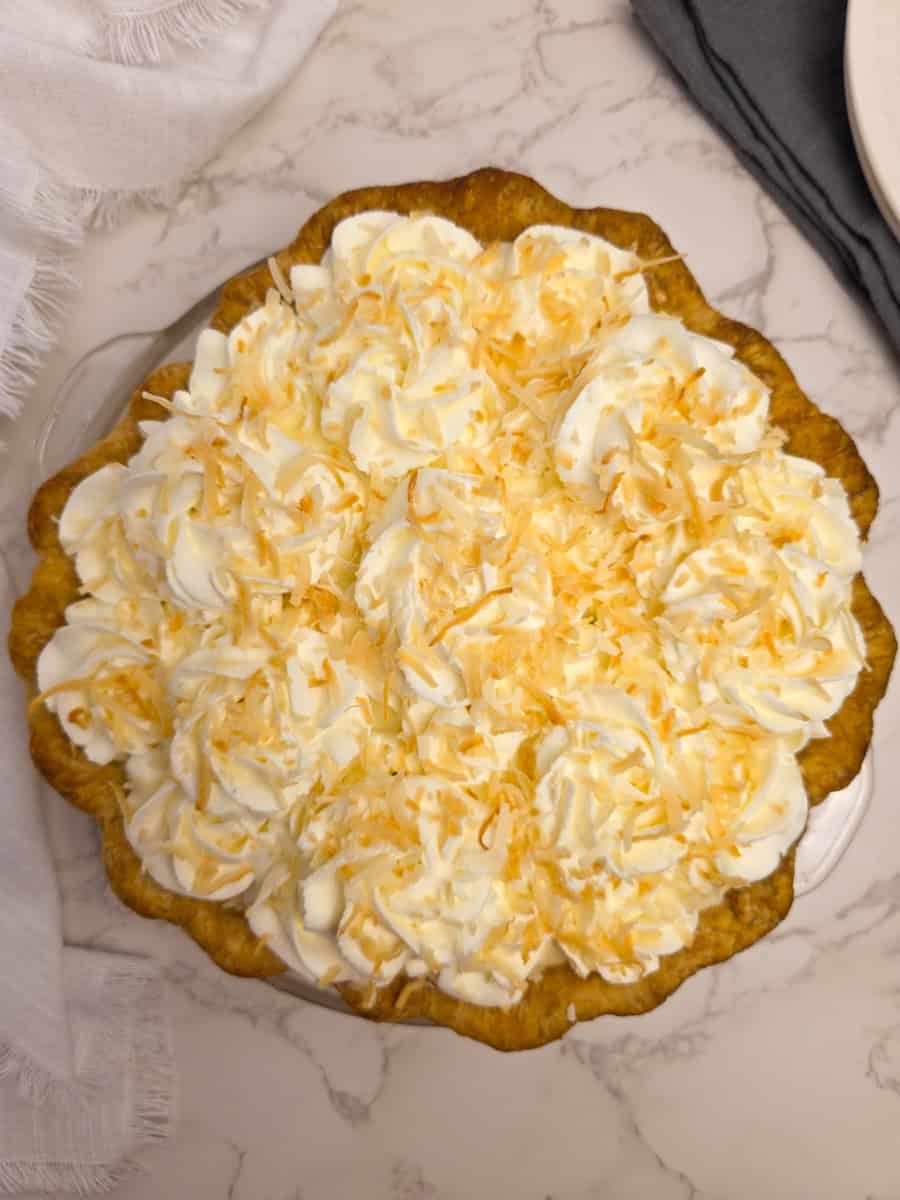 - Top the cooled and set pie with the whipped cream and toasted or plain coconut if desired. Enjoy!