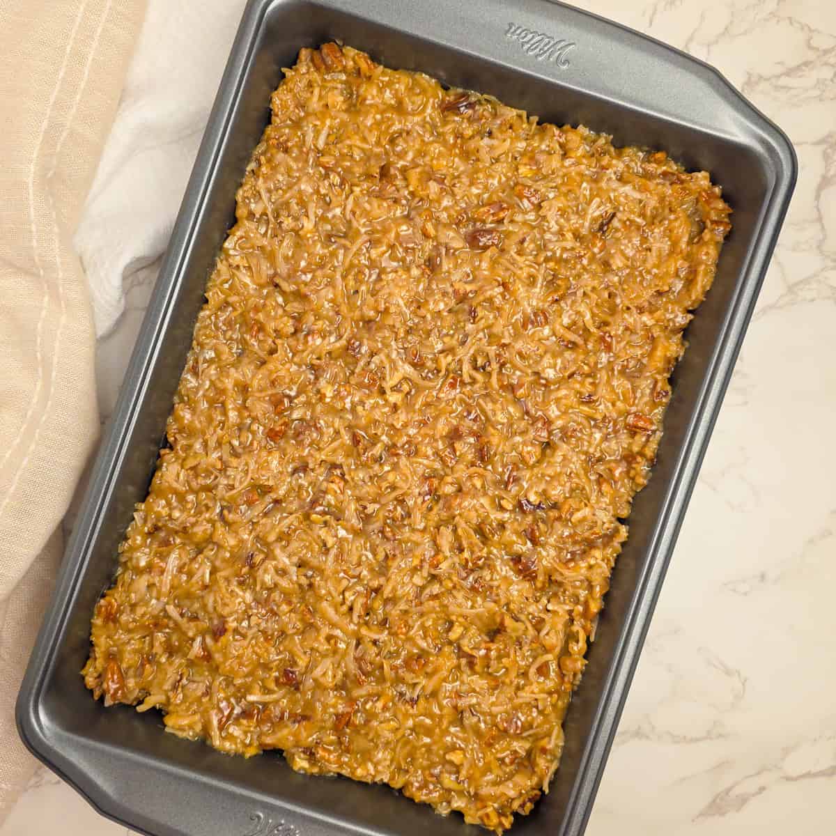 If you're a brownie lover like me, you know there's nothing better than a fudgy brownie. But when you introduce that signature coconut-pecan topping? That's pure bliss! German chocolate filling isn't just for cake, it's incredible on these brownies!