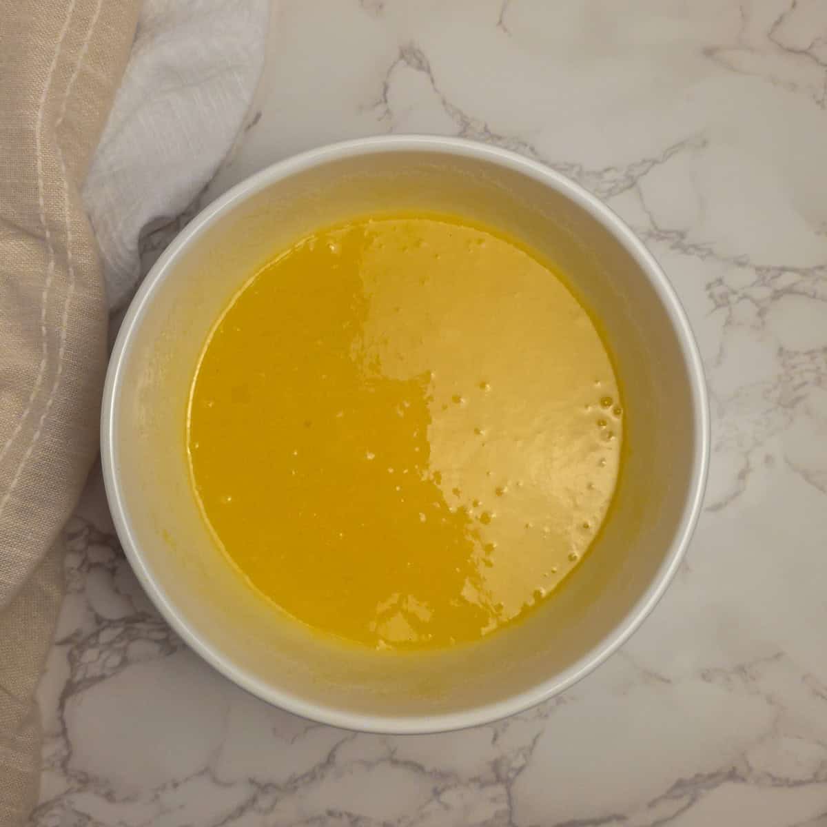 - Melt butter with sugar in a microwave safe bowl, heating in 30-second intervals until fully melted. Set aside to cool for a few minutes.